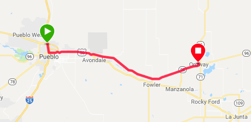Val did 42 miles today, the first 21 with a tailwind and the last 21 miles with a headwind. She talked to Joe, another touring cyclist who was in the bar, who told her about Gillian, a Warm Showers host in Ordway. The alternative was to camp in the city park, but they lock the bathrooms between 8 pm and 8 am