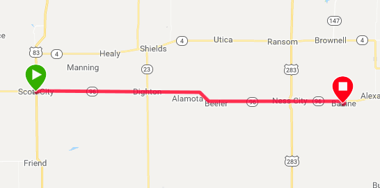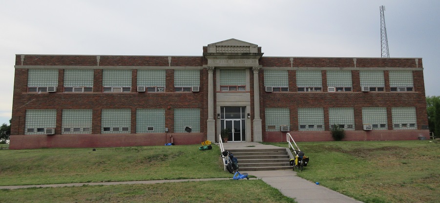Allan told us that there is indeed lodging available in the next town of Bazine, "in the old high school building". So after a long conversation with Rosie and Kevin we pushed on.