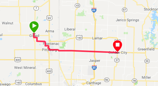 After lunch at the Napolis Italian restaurant in town we set off in the heat of the day on the 32-mile journey to the town of Golden City MO.