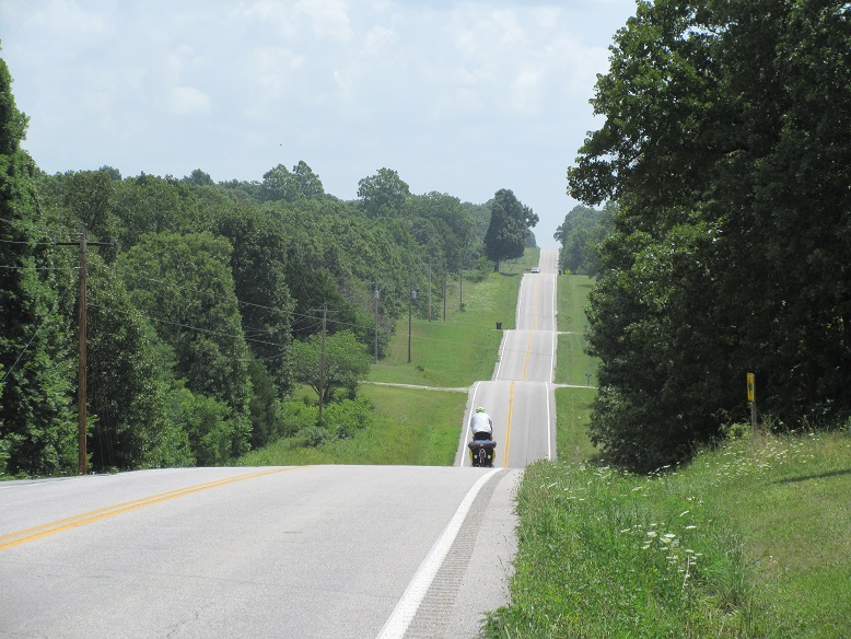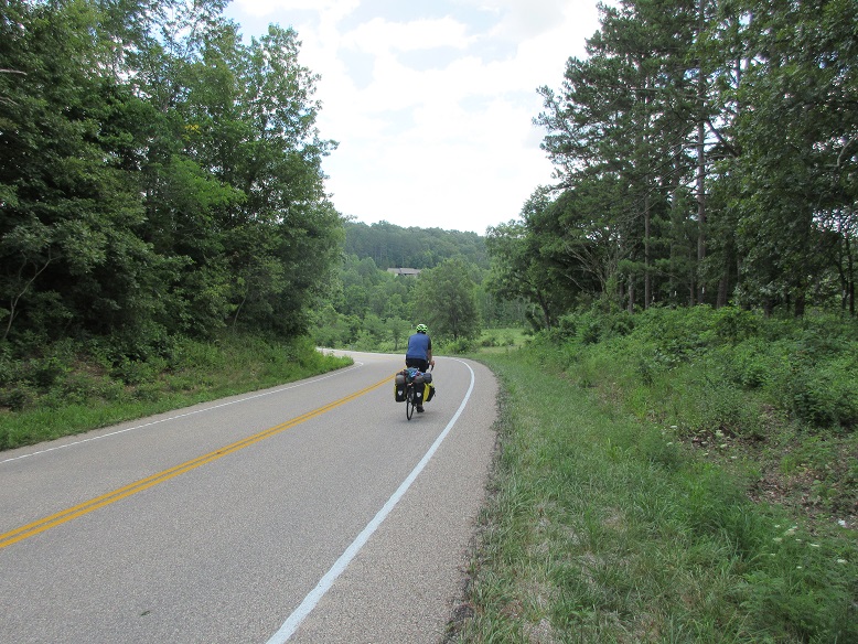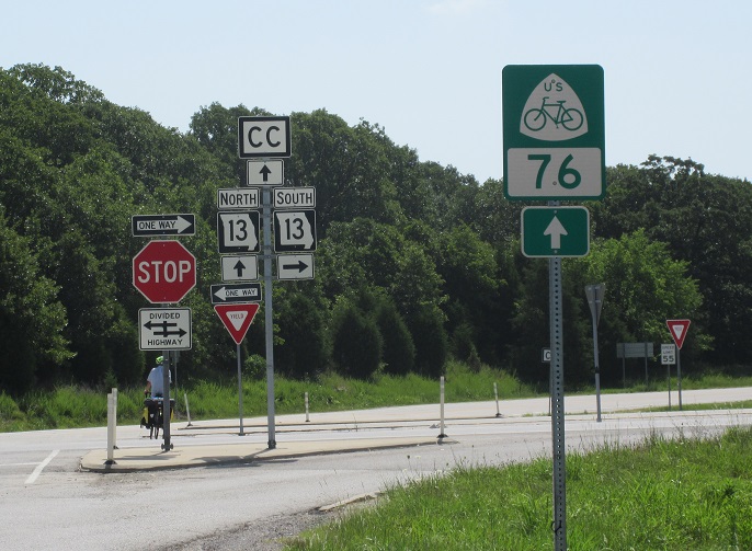 The Adventure Cycling TransAmerica route was their very first one from back when they were called BikeCentennial to celebrate America's bicentennial in 1976. On this part of the route, the state has erected "Bicycle Route 76" signs, which can be very helpful at times.