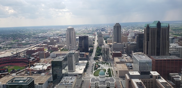 After I retrieved the bike around noon, Don drove up from his home in Frederick, about 15 miles away. We had lunch in a Steak and Shake restaurant and then he drove us to St. Louis to visit the arch.