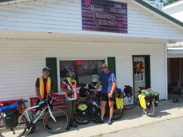 We had lunch at Rose's restaurant located near the ferry. When we came out, two other touring cyclists rode up. Adam and Ajumal are college students in Philadelphia, originally from Malaysia. Greg spent several years in Malaysia many years ago and had fun talking with them about the food. And of course we did the standard touring thing of exchanging information about the route ahead.