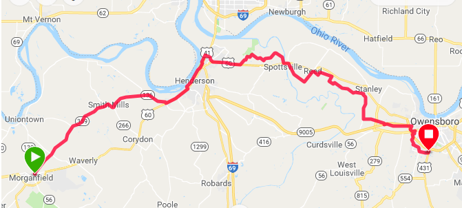 Later we stopped at a car wash. The bikes cleaned up nicely, but we shouldn't have done that. Just as washing your car makes it rain, so it goes with bikes. We got dumped on as we were wending our way through Owensboro. If we had been a half hour earlier, we would have stayed dry.