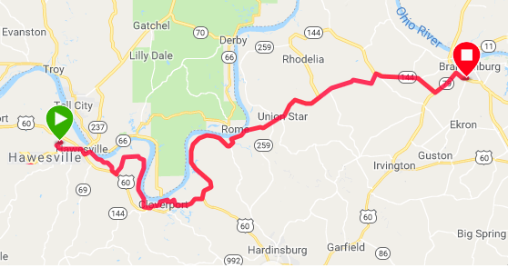 After a long climb after Stephensport we stopped at this store for a soda. Ms. Esther, the Amish lady at the checkout, was very friendly. Another talkative fellow was explaining to us why we should buy a jar of John Ellis water, the cleanest and purest water in the industry. It has extra oxygen and just a tablespoon added to your regular water makes it much more healthful. Add it to your water bottle and you can do 40 mph up the hills. Among other things, it cures cancer. Greg said that was very interesting and he would have to look into it.