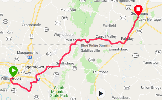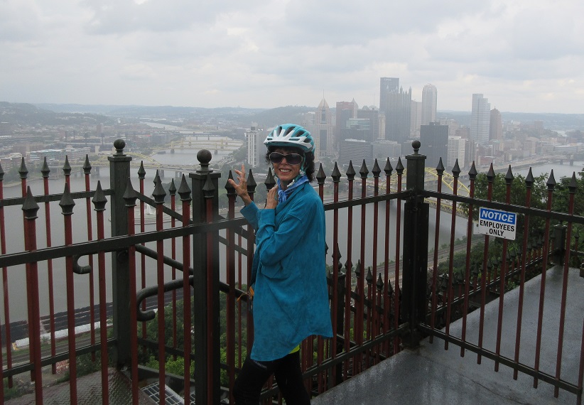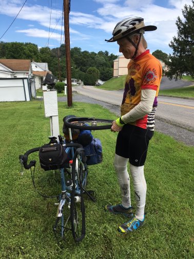 Unfortunately I had neglected to tell her that we were going to Frostburg MD, not Frostburg PA! I had forgotten that we go from Pittsburgh PA to Gettysburg PA via Maryland. She described a hilarious scene in a tobacco store in Frostburg PA where none of the patrons could make head nor tail of her Adventure Cycling map of Frostburg MD. By the time she got to the correct Frostburg it was too late for her to ride.