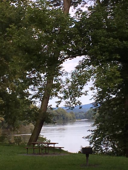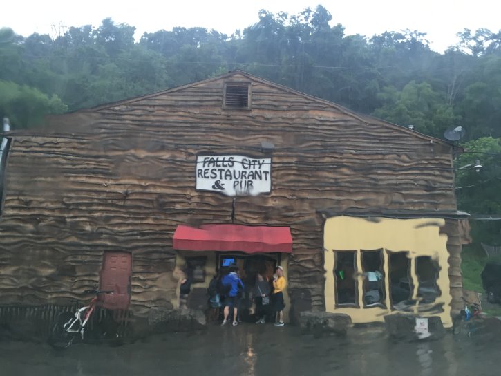 We met for a nice lunch in Ohiopyle but by the time we finished there was a heavy thunderstorm, so we just drove the 11 miles to Confluence. (This photo is looking out the car windshield.)
