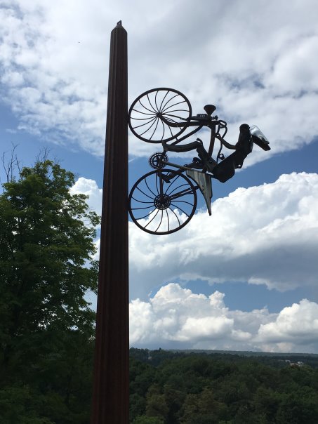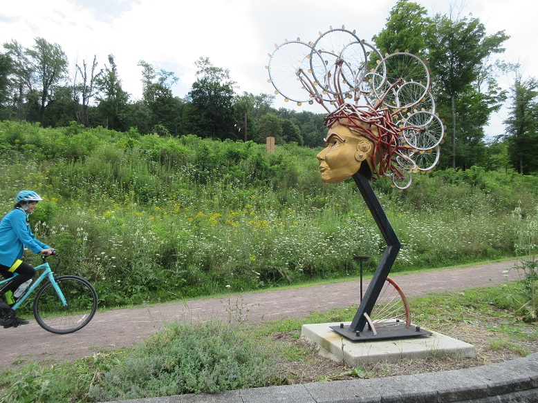 There is a switchbacked trail leading up the hill from the GAP trail to the town of Frostburg. It is decorated with several sculptures.