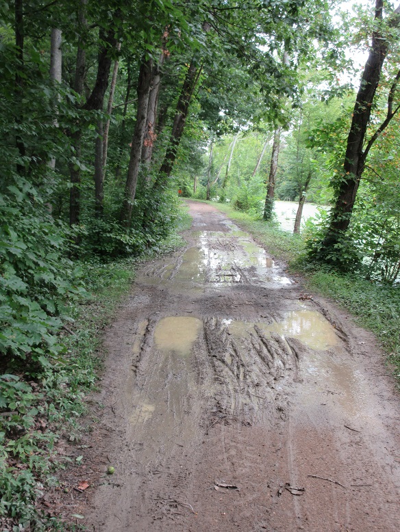 After rejoining the C&O the surface was much better than the earlier part I had been on. Still rough gravel and uneven surface but few mudholes, although it did get worse later on.
