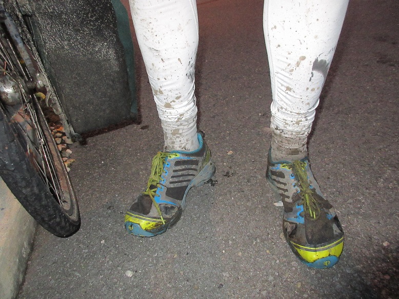 The bike and my shoes were covered with mud by the end of the ride, even though the bike has fenders. I washed everything using a hose on the side of the hotel building.