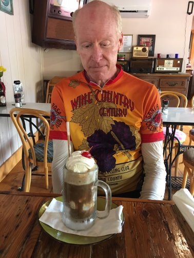 Note the old-timey decor on this photo. They had old-fashioned small-screen cathode-ray tube TV sets showing reruns of the I Love Lucy show. (I swear I rarely have root beer floats at home.)