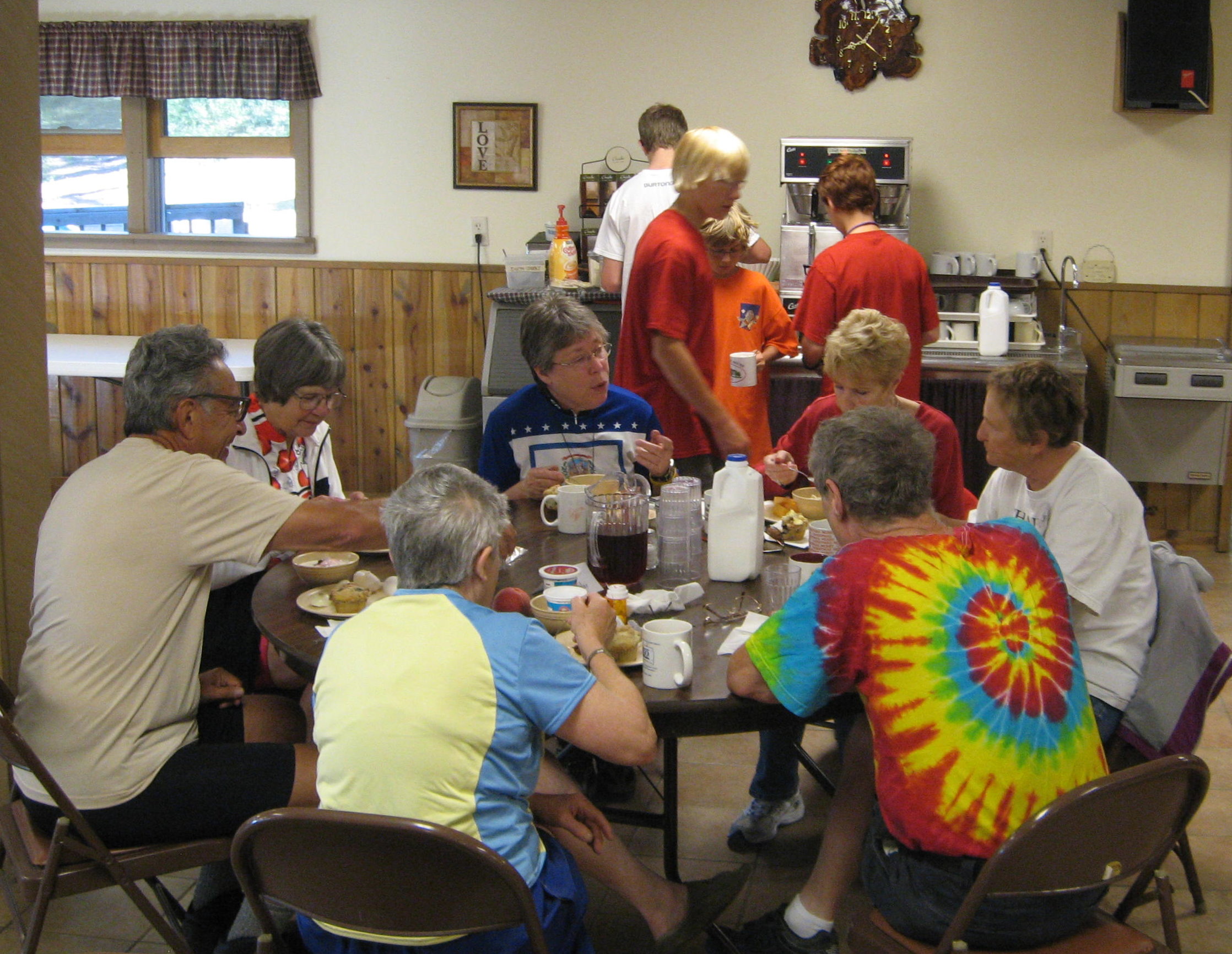 cafeteria style. At breakfast, after everyone finishes getting their seconds, the lunch