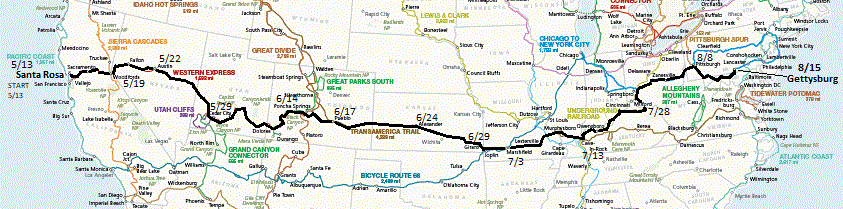 I would recommend the Western Express only to hardy, fit cyclists. The terrain is very mountainous and there are long stretches with no services. You need to start late enough in the year that you are not fighting snow drifts on Carson Pass but early enough in the year that you don't hit blazingly hot weather in the desert.