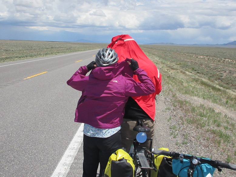 We met the first cyclist we've seen since long before we passed through Fallon. He parked his RV at Bob Scott Summit (although the RV park there was closed) and is just riding his road bike between summits.