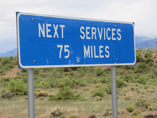 This sign was just as you leave Garrison, but Garrison itself has no services. The Adventure Cycling map says there are 84 miles between services.
