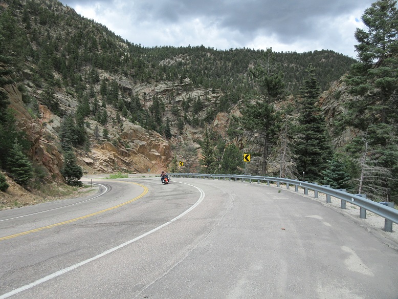 They didn't have the bolts but Greg did buy a new headlight since his old one had a defective mount. When the fellow who was helping us heard we were planning to ride through the Arkansas River canyon on highway 50, he strongly suggested we take a cab instead. That route has high-speed traffic on a two-lane road with no shoulders in many places and lots of blind curves. He said last year two cyclists who had been warned about the danger and rode anyway were killed.
