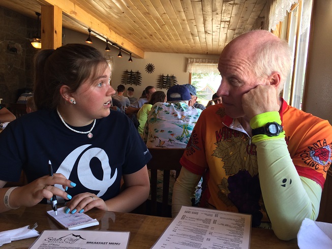 The choice for accomodations tonight was the city park in Eads with bathrooms on the other side of the railroad tracks or the Cobblestone Inn where they have a special rate of $79 for cyclists for a large room with two beds and full breakfast. Guess which option we chose?