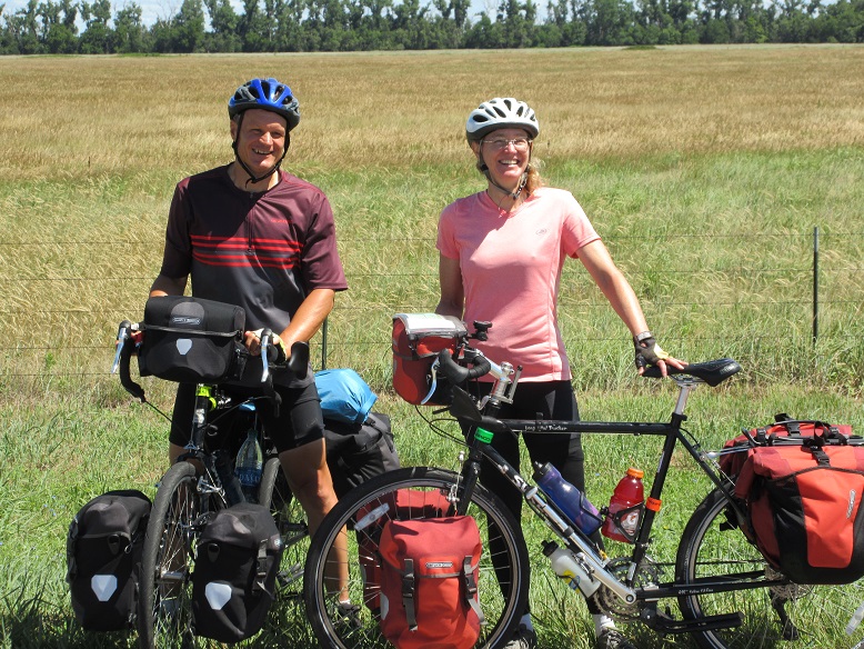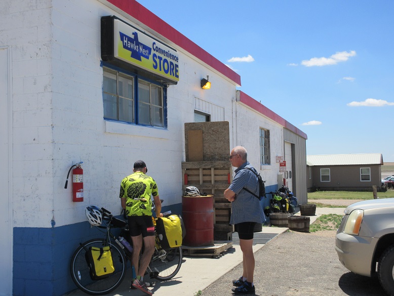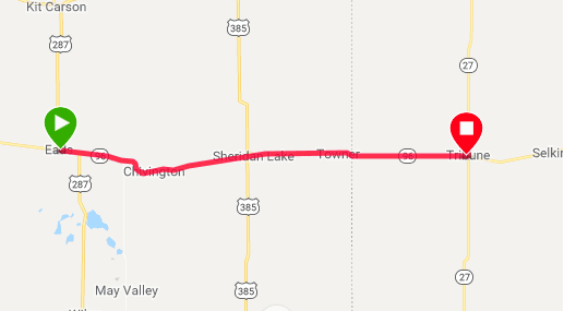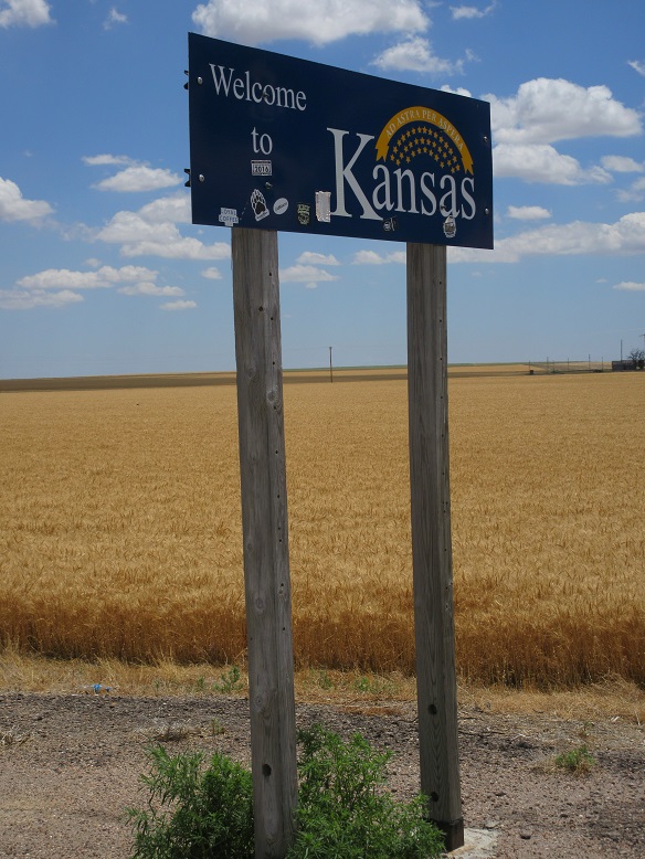 We passed into Kansas about 16 miles before our destination of Tribune. The biting flies were attacking our ankles so we got back on the road as soon as possible after snapping the photo.