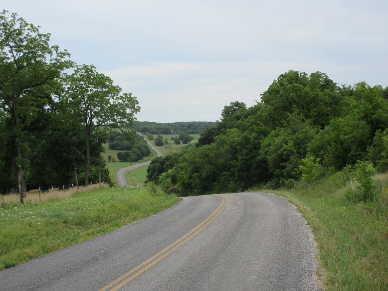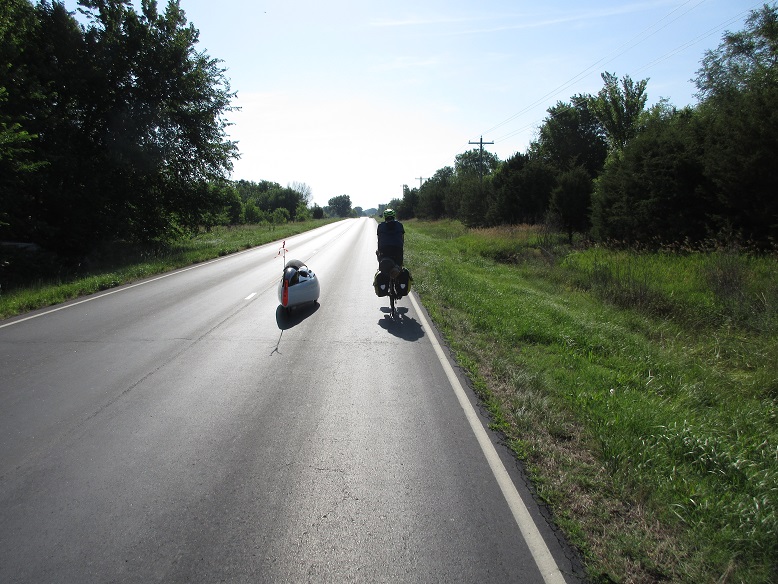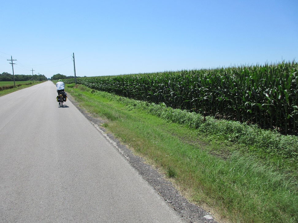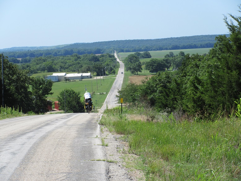 The temperature today was over 100 degrees with high humidity. Even though we got a fairly early start, rolling out of camp around 7:30, we still ended up riding in the hot part of the day. Also it is not true that Kansas is flat as a pancake.