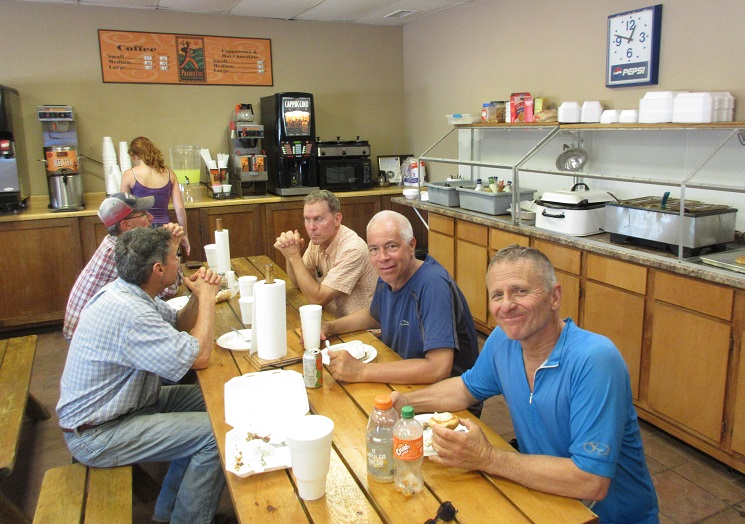 We got a text from Allan who is back on the TransAmerica route after visiting friends in the town of Nevada. He rolled up to the house a little before 7 pm and took a quick shower. Then we all went to dinner at the same Chinese restaurant where we had lunch.