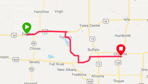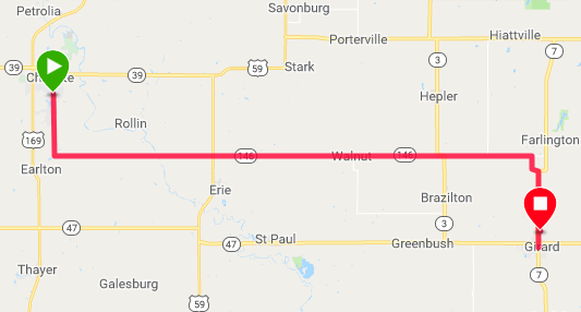 The last 5 miles were kind of tough because it was right into the face of a strong south wind and it was starting to get hot. Greg had talked about pushing on another 15 miles to Pittsburg where there is a bike shop so he could get his broken spoke fixed. But by the time we finished lunch it was the hot part of the day and we decided to stay in Girard.