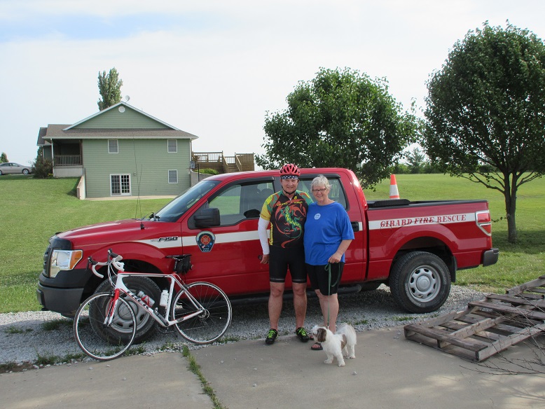 At the fire station Joe, the Chief, invited us into his office and proposed that we stay at his house instead! So we rode back to their house at the north end of town where they invited us in, gave us each a bedroom, let us take showers, and let us wash and dry our clothes in their mahines.
