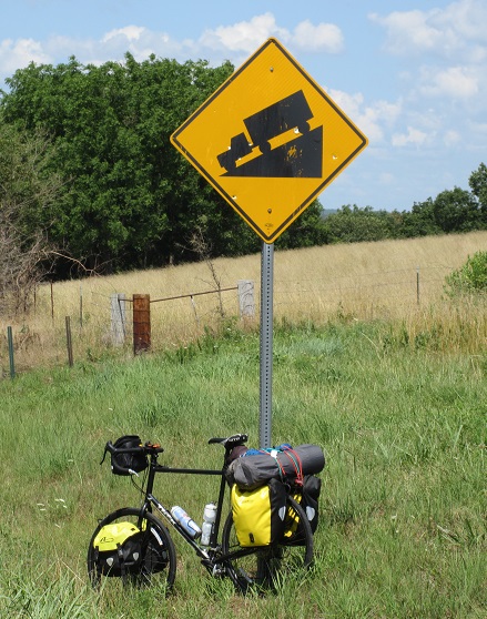 The Adventure Cycling TransAmerica route was their very first one from back when they were called BikeCentennial to celebrate America's bicentennial in 1976. On this part of the route, the state has erected "Bicycle Route 76" signs, which can be very helpful at times.