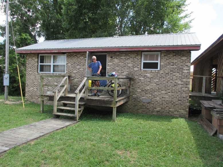 So we rode the additional 18 miles to Houston. By then it was getting a bit cooler and we were drinking ice water, so it wasn't too bad. We are in the Lazy L motel in Houston. The only restaurants in town that are open on July 4 are fast food so we had dinner at the Taco Bell next door.