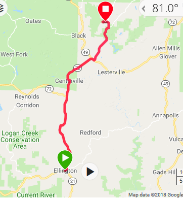 We couldn't find any available campsites at Johnson's Shut-Ins State Park, but the camp host found us an RV site whose occupant left a day early. They had WiFi at the camp store so I could check my email for the first time in a couple days. There is no cell phone coverage however.