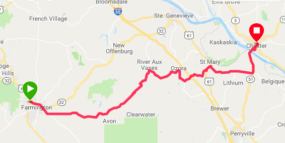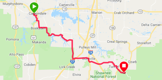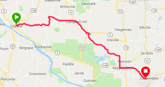 We stopped in the market in Goreville where I chugged a 32-ounce Gatorade. Then we had them make us sandwiches and we sat on a bench out front of the store eating them. Jim had a long conversation with a gent named Ben who was a fount of knowledge about the local area and its history.