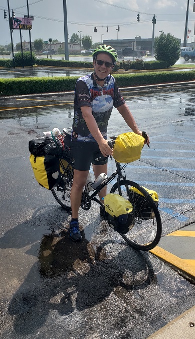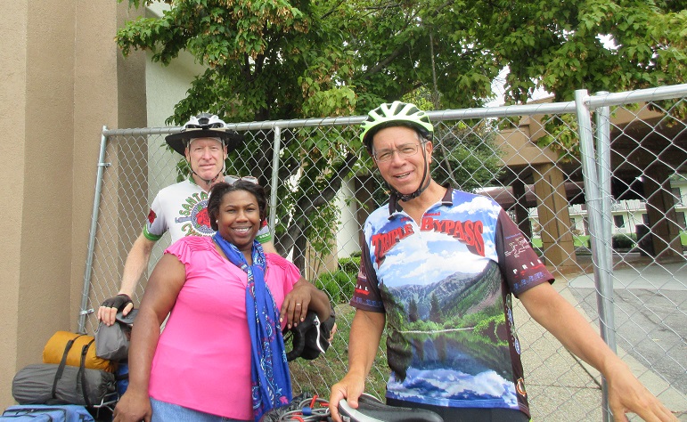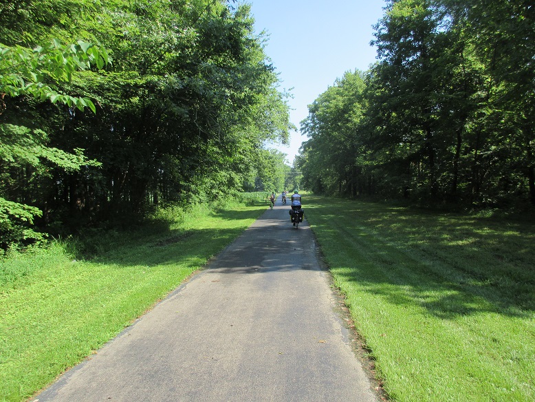 We navigated out of town using Google on Greg's smart phone. We found our way to the Horse Fork bike trail to get us back on the Adventure Cycling route. On the trail, Greg had a long conversation with a local lady cyclist originally from Costa Rica who was going our way.