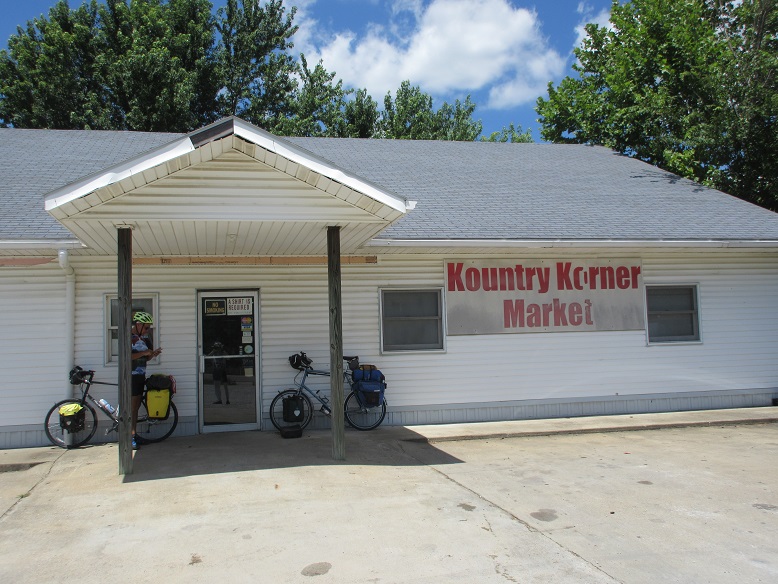 After a long climb after Stephensport we stopped at this store for a soda. Ms. Esther, the Amish lady at the checkout, was very friendly. Another talkative fellow was explaining to us why we should buy a jar of John Ellis water, the cleanest and purest water in the industry. It has extra oxygen and just a tablespoon added to your regular water makes it much more healthful. Add it to your water bottle and you can do 40 mph up the hills. Among other things, it cures cancer. Greg said that was very interesting and he would have to look into it.