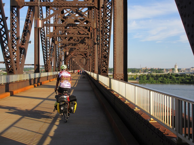 Then on Saturday when Greg tried to get to the repair place by bus, confusion about bus routes and schedules meant he didn't get to the shop before they closed. We decided just to stay two more days in Louisville. I am still running ahead of schedule to get to Ohio, the hotel had a two-day special price, and they were still predicting rain. It is supposed to be dry tomorrow, Tuesday July 24.