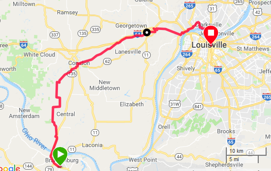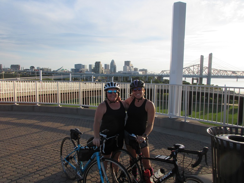 After we got back to the hotel, Greg decided to ride to a couple other local bike shops to see if he could find an interesting jersey. As he was riding down the street his bike hit a pothole and the cell phone popped out of the handlebar bag onto the street, breaking the screen. So it looks like we will be staying in Louisville another day so Gret can get his phone fixed.
