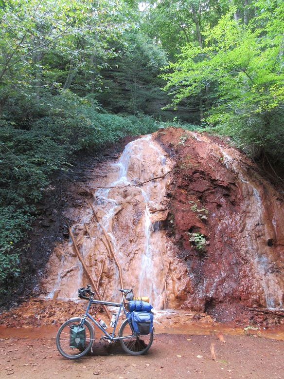 The Red Waterfall is runoff from an old coal mine. It causes lots of pollution but is kind of pretty.