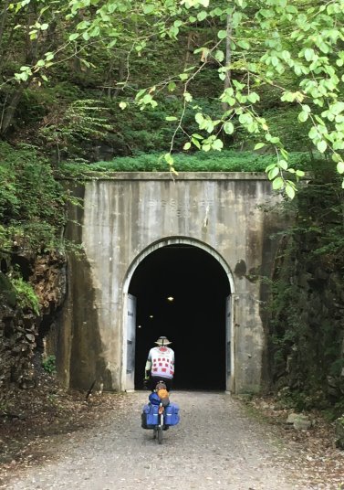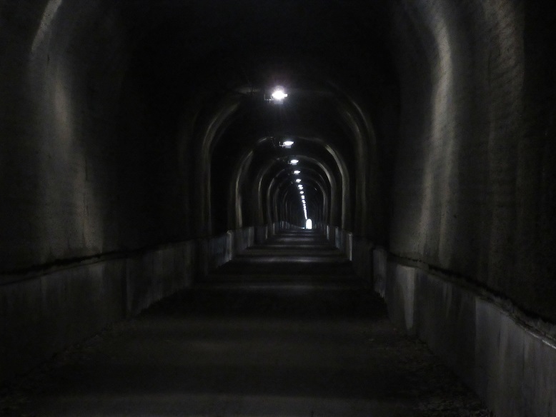 After a bit I fished my Fly12 headlight/video camera out of a pannier in the dark and managed to get it mounted and turned on. Here's a short video of what it was like to walk the bike through the tunnel: