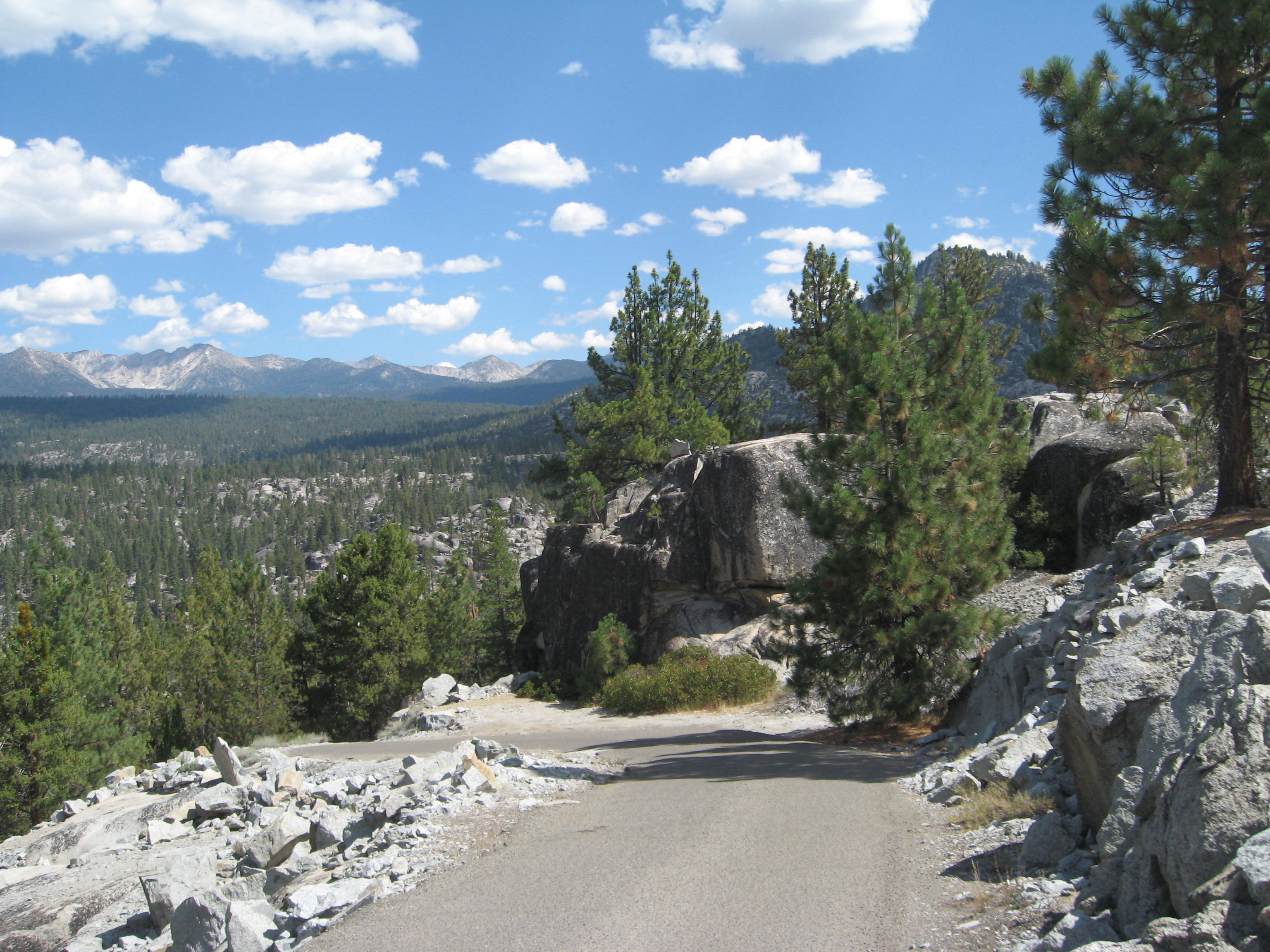 Stage 1 is the first of the two days that had to be re-routed because of the fire. The route went from our Forest Service camp at Midge Creek up to Kaiser pass, past Kaiser pass to Edison Lake, and then retraced the route past Midge Creek to tonight's campsite at Shaver Lake.